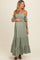 Light Olive Smocked Ruffle Off Shoulder Tiered Maternity Maxi Dress