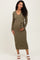 Light Olive Solid Brushed Rib Long Sleeve V-Neck Fitted Maternity Midi Dress