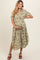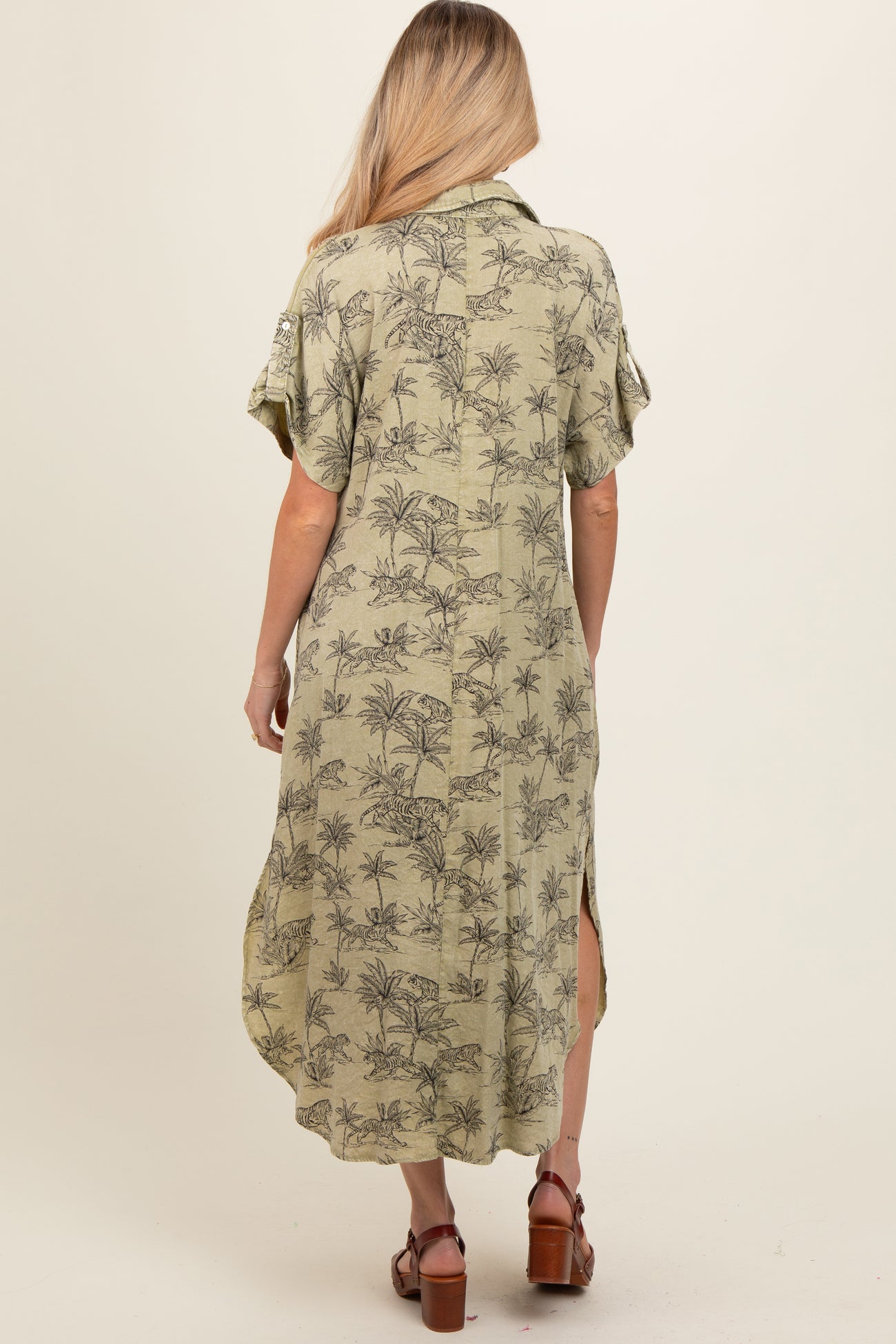 Light Olive Tiger Print Button Front Rounded Hem Maternity Midi Dress