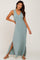Light Olive V-Neck Side Slit Sleeveless Midi Dress