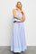 A colorblock maxi skirt with an elastic waist, a waist tie, and full lining.