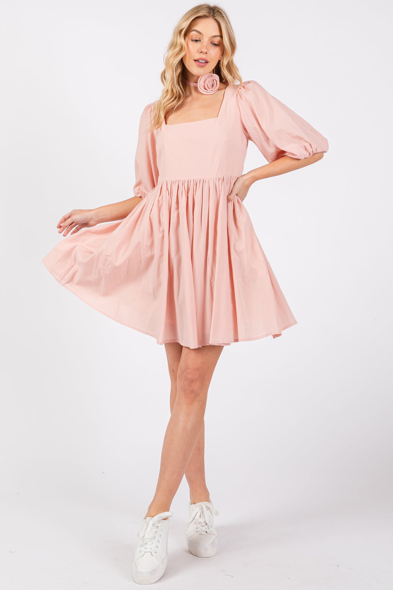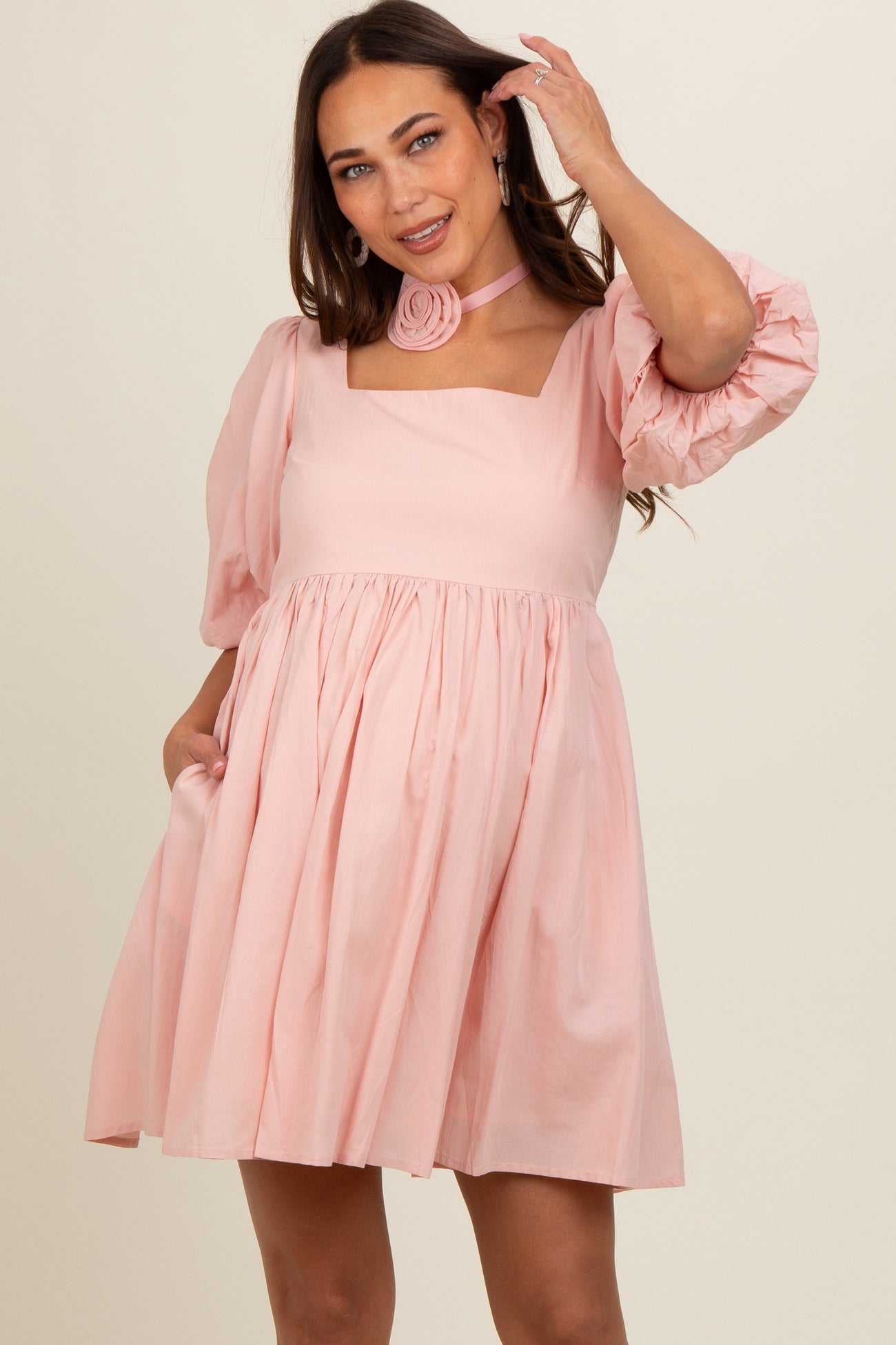 Light Pink Babydoll Maternity Mini Dress
