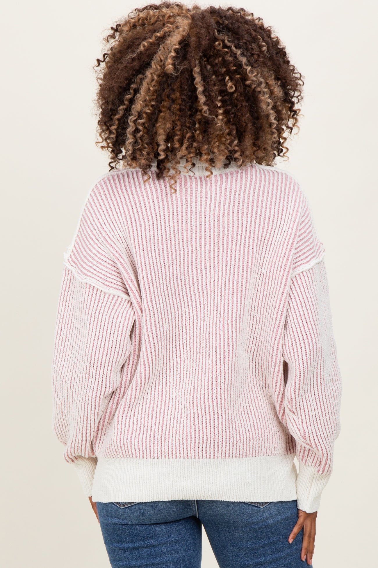 Light Pink Two Tone Stripe Textured Henley Neck Maternity Sweater Top