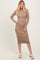 Light Taupe Mock Neck Fitted Ribbed Knit Midi Dress