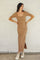 Light Taupe Ribbed Short Sleeve Side Slit Midi Dress