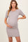 Light Taupe Striped Ribbed Knit Short Sleeve Maternity Mini Dress