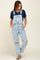 Details A pair of light wash distressed overalls featuring five pockets. Content + Care
