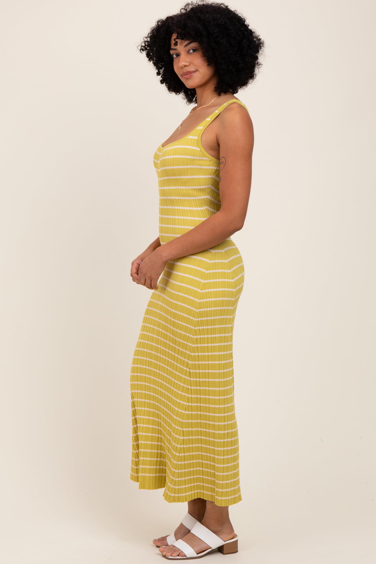 Lime/Cream Lightweight Rib Fit And Flare Midi Dress