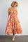 A lightweight floral print midi dress with an off shoulder neckline, puff sleeves and tiered skirt. Elastic waistband with tassel tie detail.