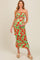 Lime Floral Smocked Drawstring Front Cutout Ruffle Trim Maternity Midi Dress
