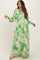 Lime Leaf Print Smocked Waist Long Sleeve Maternity Maxi Dress