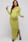 A rib knit maternity maxi dress featuring a v-neckline, a collar, long sleeves, and a side slit.