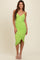 Lime Ruched Mesh Fitted Tulip Hem Dress