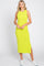 A sleeveless ribbed midi dress featuring a side slit and a rounded neckline.