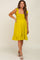 A sleeveless textured maternity dress featuring ruffle shoulder straps, a smocked top, a ruffle hem and a v-neckline.