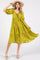 A solid hued midi dress featuring short sleeves, a tiered body and a self-tie neckline.