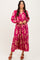 Magenta Damask Front Tie Smocked Waist Midi Dress