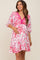 A floral border print maternity dress featuring a v-neckline, 3/4 length dolman sleeves, a back slit with an adjustable tassel tie and double lining.