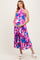 Magenta Floral Satin Pleated Halter Neck Maternity Midi Dress