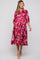 Magenta Floral Satin Ruffle Neck Maternity Midi Dress