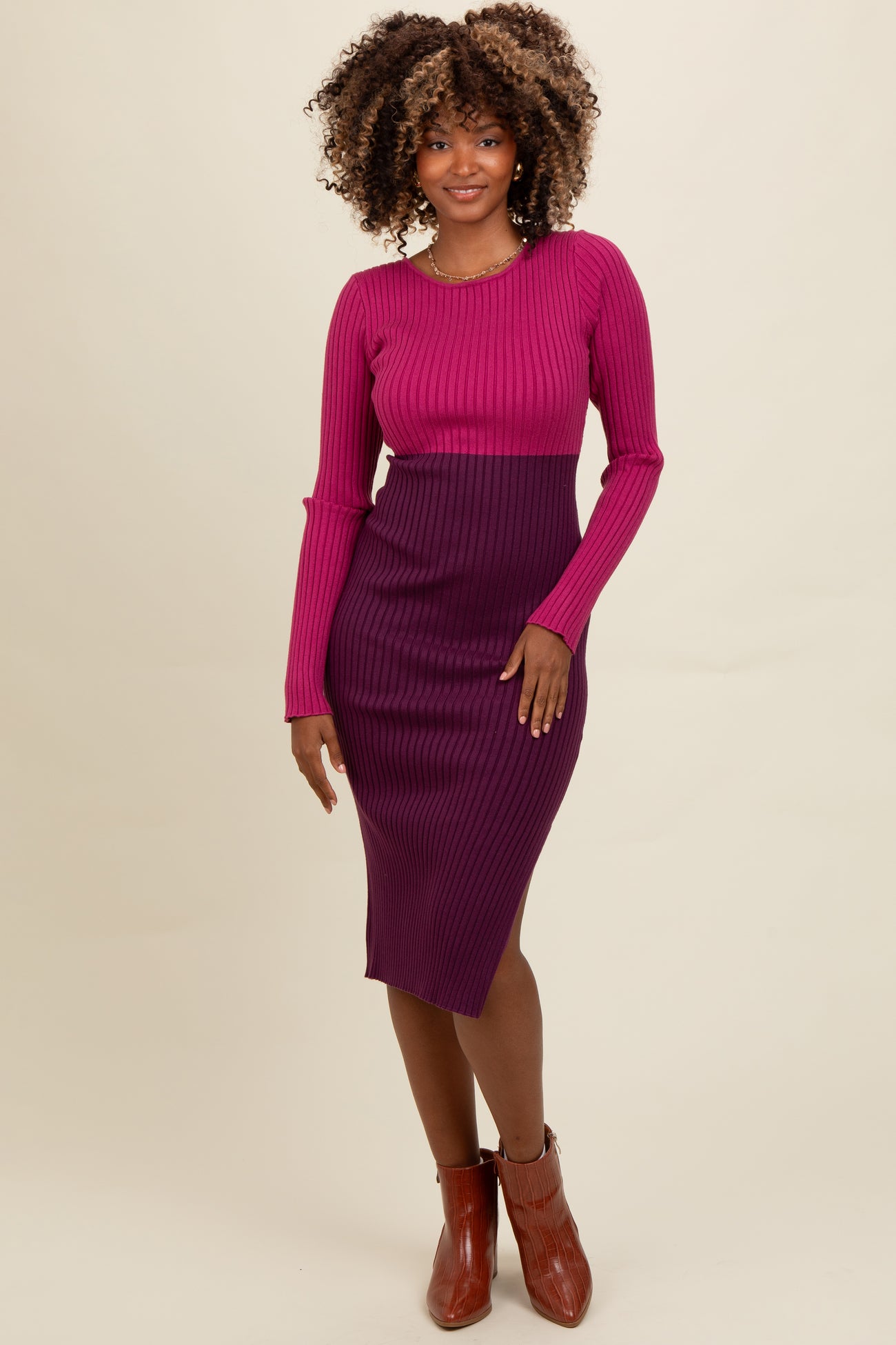 Magenta Knit Colorblock Back Twist Cutout Maternity Midi Dress