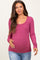 Magenta Ribbed Ruched Maternity Long Sleeve Top