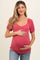 Magenta Short Puff Sleeve V-Neck Maternity Top