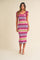 A multi-colored stripe sweater knit midi dress featuring a rounded neckline and adjustable ties at the shoulders.