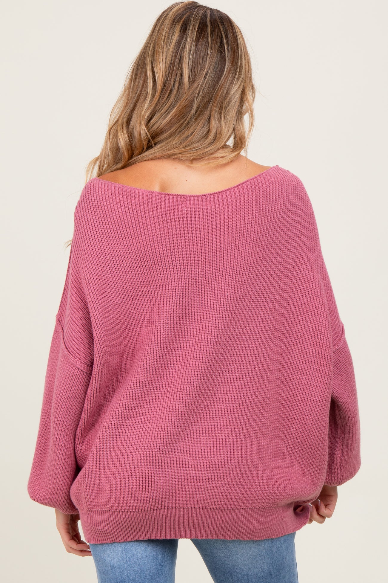 Mauve Balloon Sleeve Boat Neck Knit Maternity Sweater