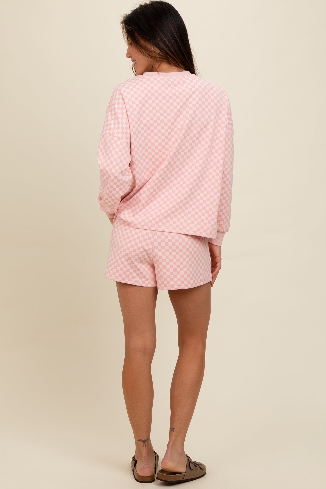 Elevate your loungewear with this Mauve Checkered Plaid Pullover Shorts Set, designed for effortless comfort and style. The soft pastel mauve tone features a chic, subtle checkered plaid pattern that adds a trendy touch. The pullover top boasts a relaxed fit with long sleeves and ribbed cuffs for cozy wear, while the matching shorts offer an adjustable drawstring waist for a perfect fit. Ideal for casual days at home or stylish weekend outings. Made from breathable, lightweight fabric to keep you comfortable all day long. Pair with sandals or sneakers for an easy, fashionable look.