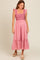 Mauve Contrast Stitch Smocked Ruffle Strap Midi Dress