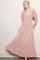 Mauve Floral Lace Trim Smocked Maxi Dress