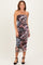 Mauve Floral Mesh Strapless Ruched Midi Dress