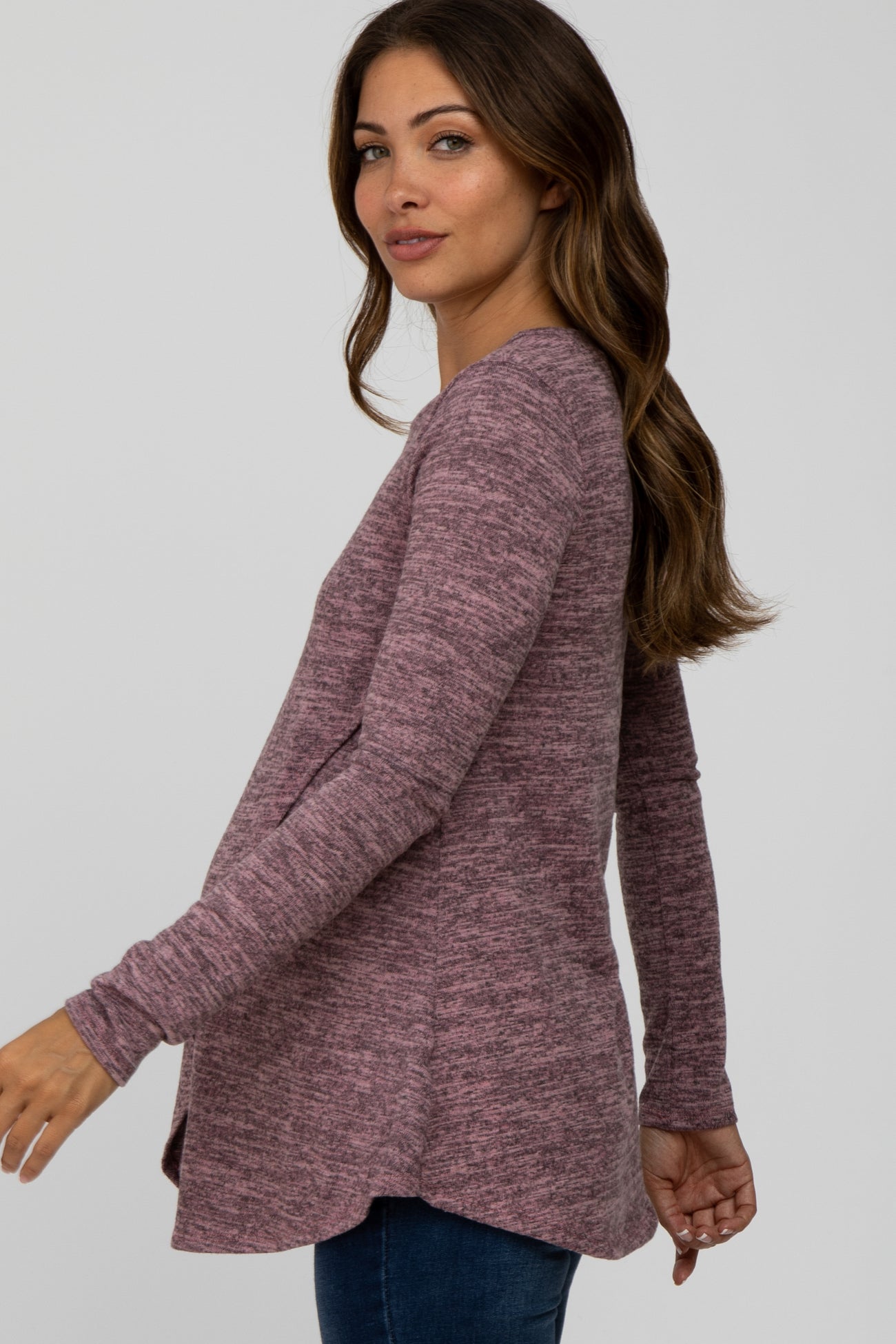 Mauve Heather Knit Layered Front Maternity/Nursing Top