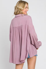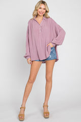 Mauve Lightweight Striped Textured Collared Top