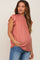 A solid maternity blouse featuring a smocked mock neck, flutter sleeves, and a back keyhole cutout with a button closure.