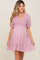 Mauve Plaid Smocked Puff Short Sleeve Maternity Dress