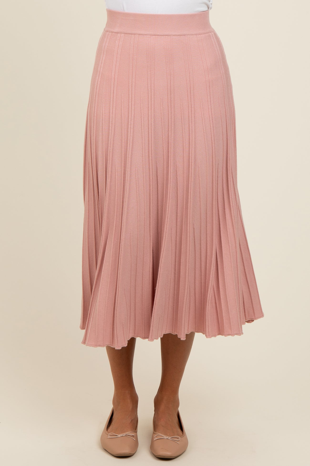 Mauve Ribbed Knit A-Line Midi Skirt