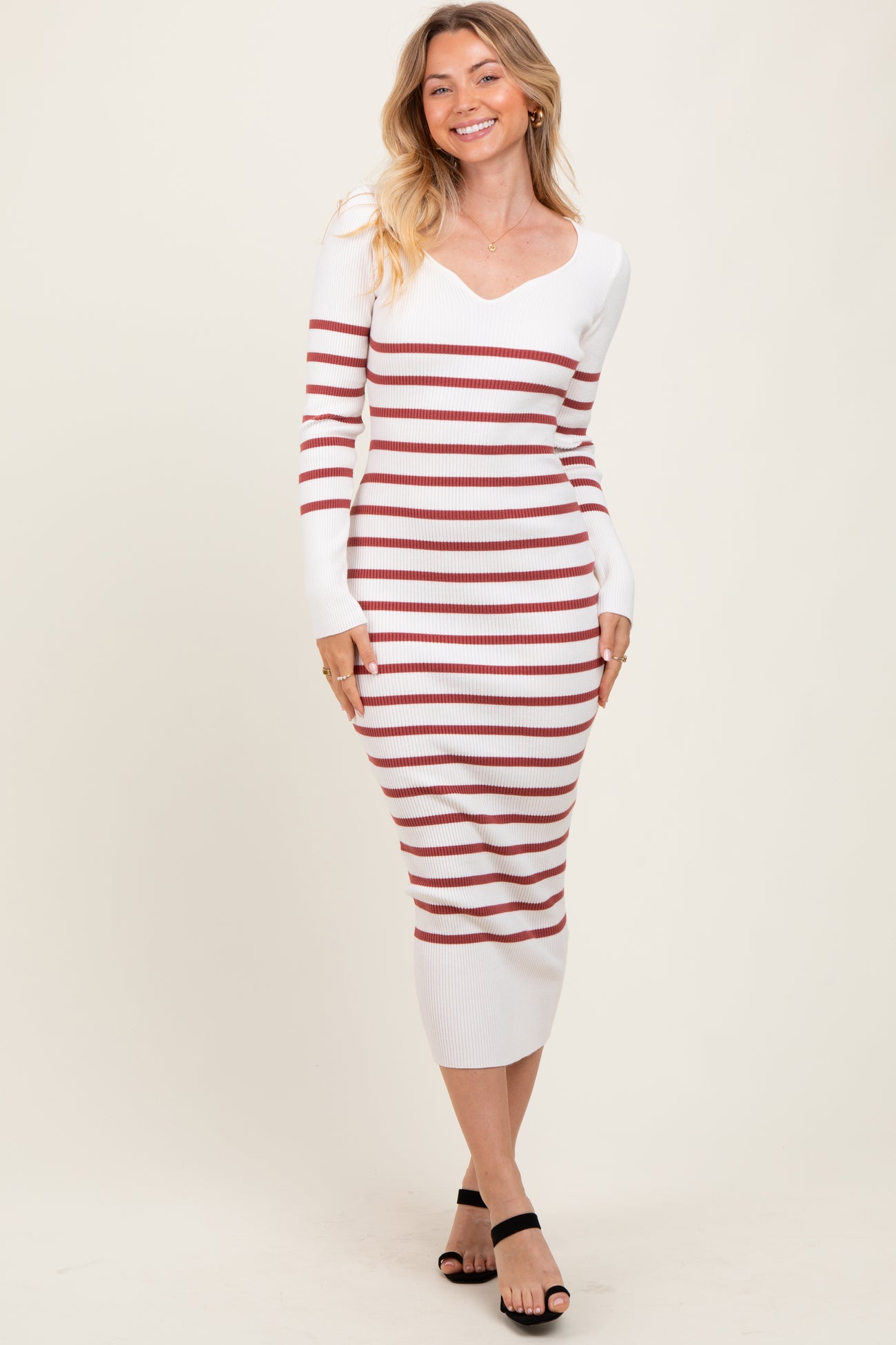 Mauve Ribbed Knit Striped Long Sleeve Sweater Dress