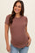 Mauve Ribbed Short Sleeve Curved Hem Maternity Top