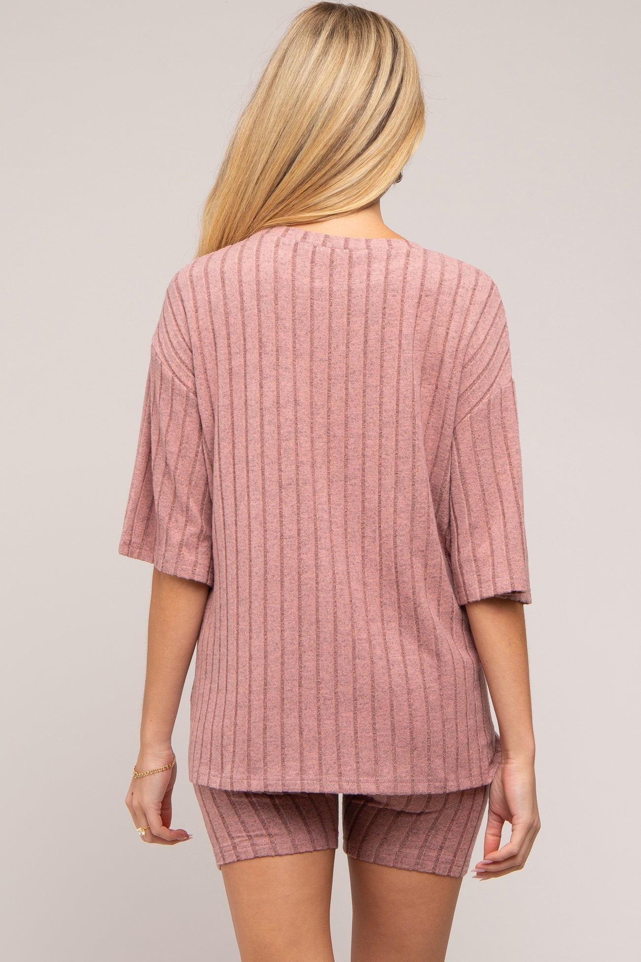 Mauve Ribbed Soft Short Sleeve Maternity Shorts Set