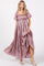 Mauve Satin Square Neck Short Puff Sleeve Maxi Dress