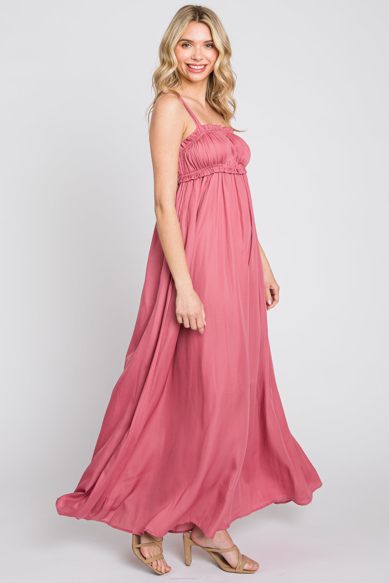 A solid hue maxi dress with a shirred bust and side pockets. Straps are adjustable with the button accents inside the back.