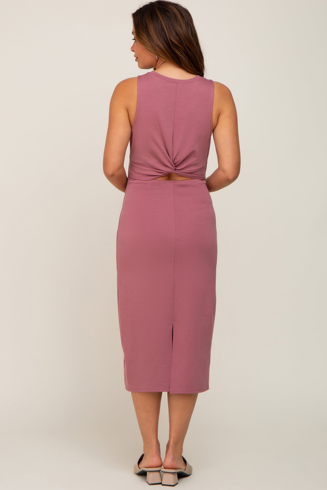 Mauve Sleeveless Back Cutout Maternity Midi Dress