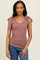 Mauve Solid Ribbed Sleeveless Tie V-Neck Top