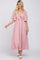 Mauve Textured Dot Front Tie Ruffle Sleeve Midi Dress