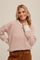 A fuzzy knit two tone sweater featuring a rounded neckline, long sleeves and a color block ribbed trim.