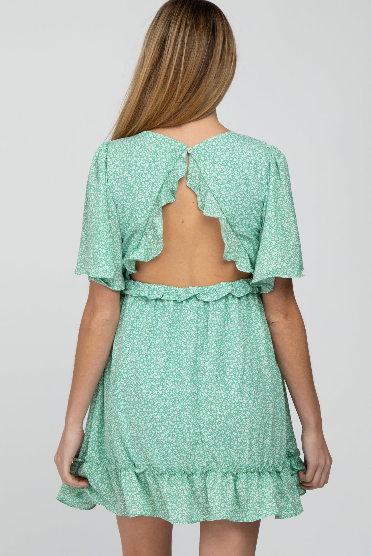 Mint Green Floral Ruffle Accent Cutout Maternity Dress