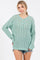 An open knit sweater with front functioning buttons, and long drop shoulder sleeves.