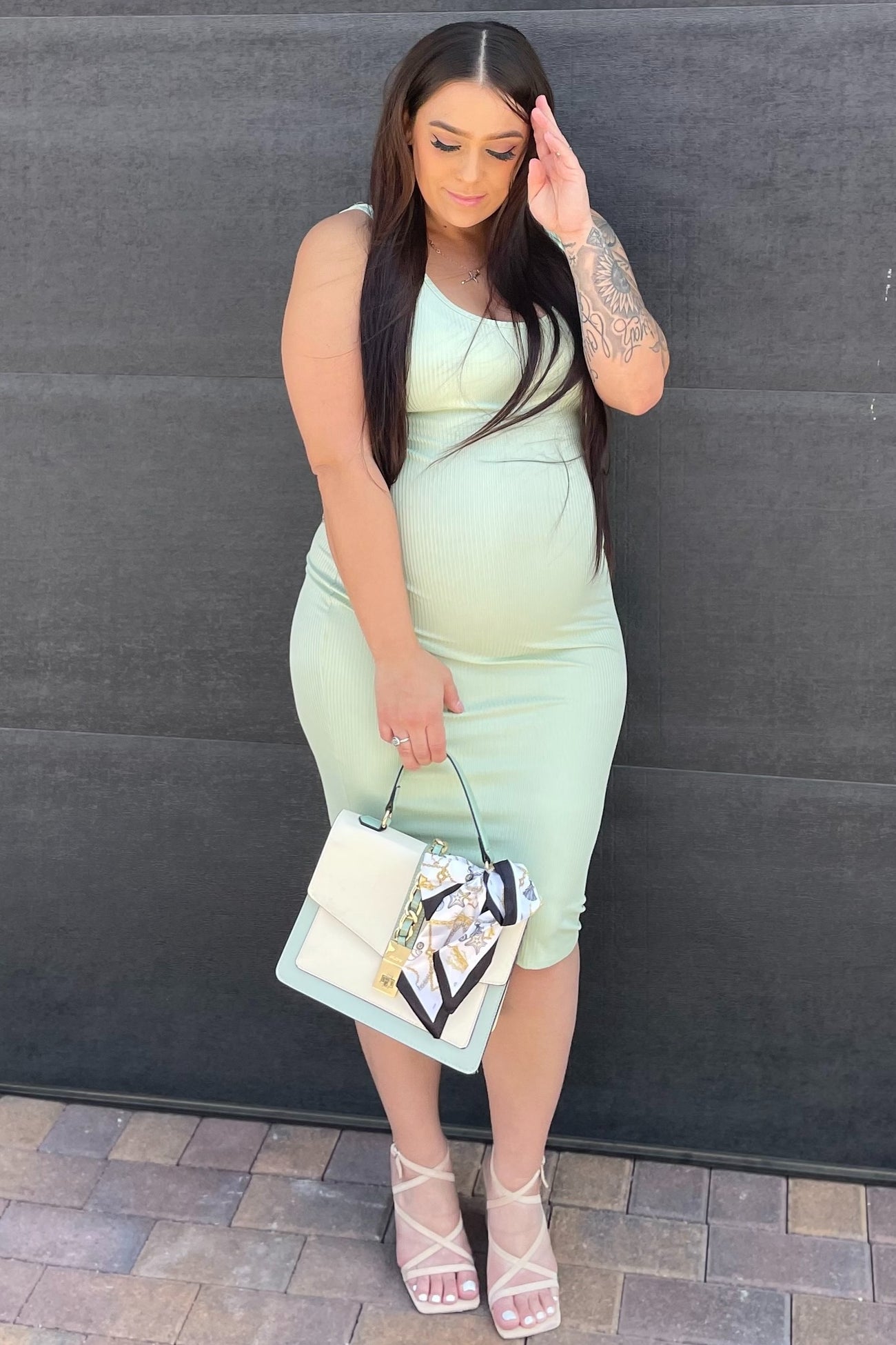 Mint Green Rib Knit Basic Sleeveless Maternity Dress